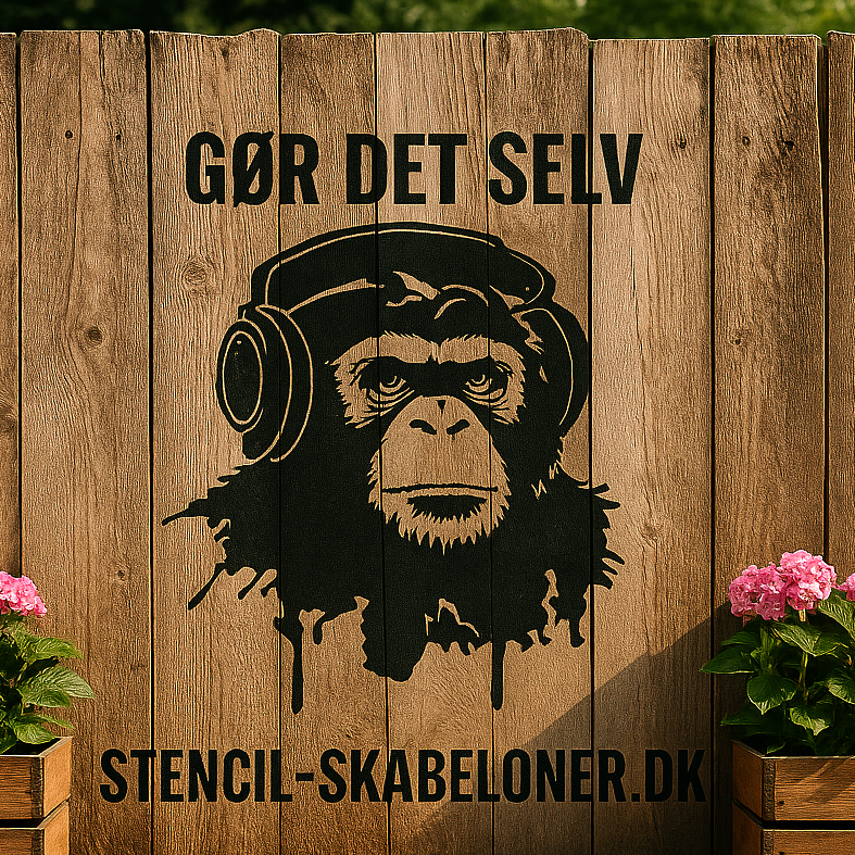 Jeg kan skære stencils helt op til 58 x 58 cm, så du kan få dit logo eller motiv i stor størrelse.